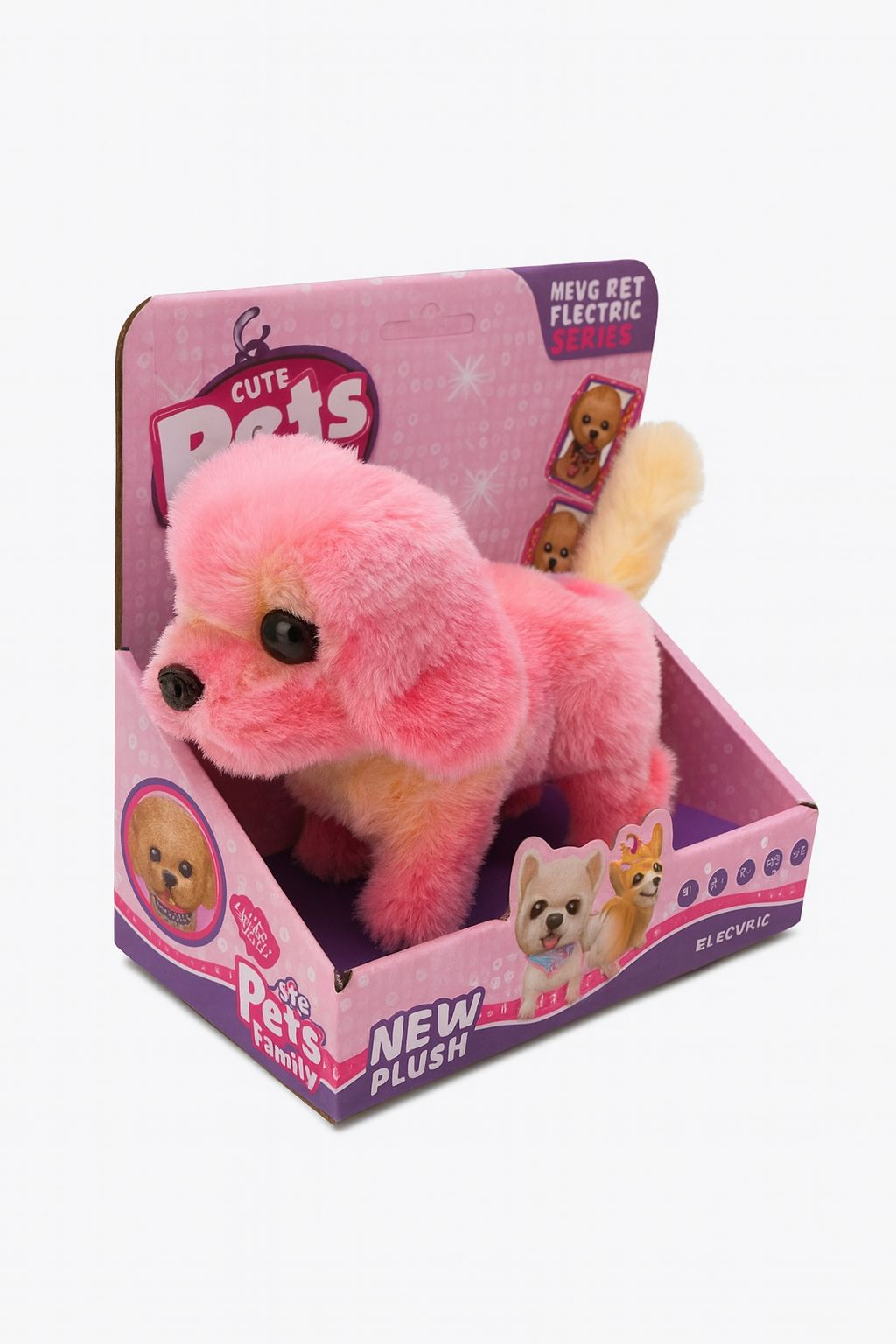 Catelus Interactiv Din Plus Roz-Galben Cute Pets - Jucarie Electronica Cu Miscare Si Sunete, New Plush, 18x17.5 cm