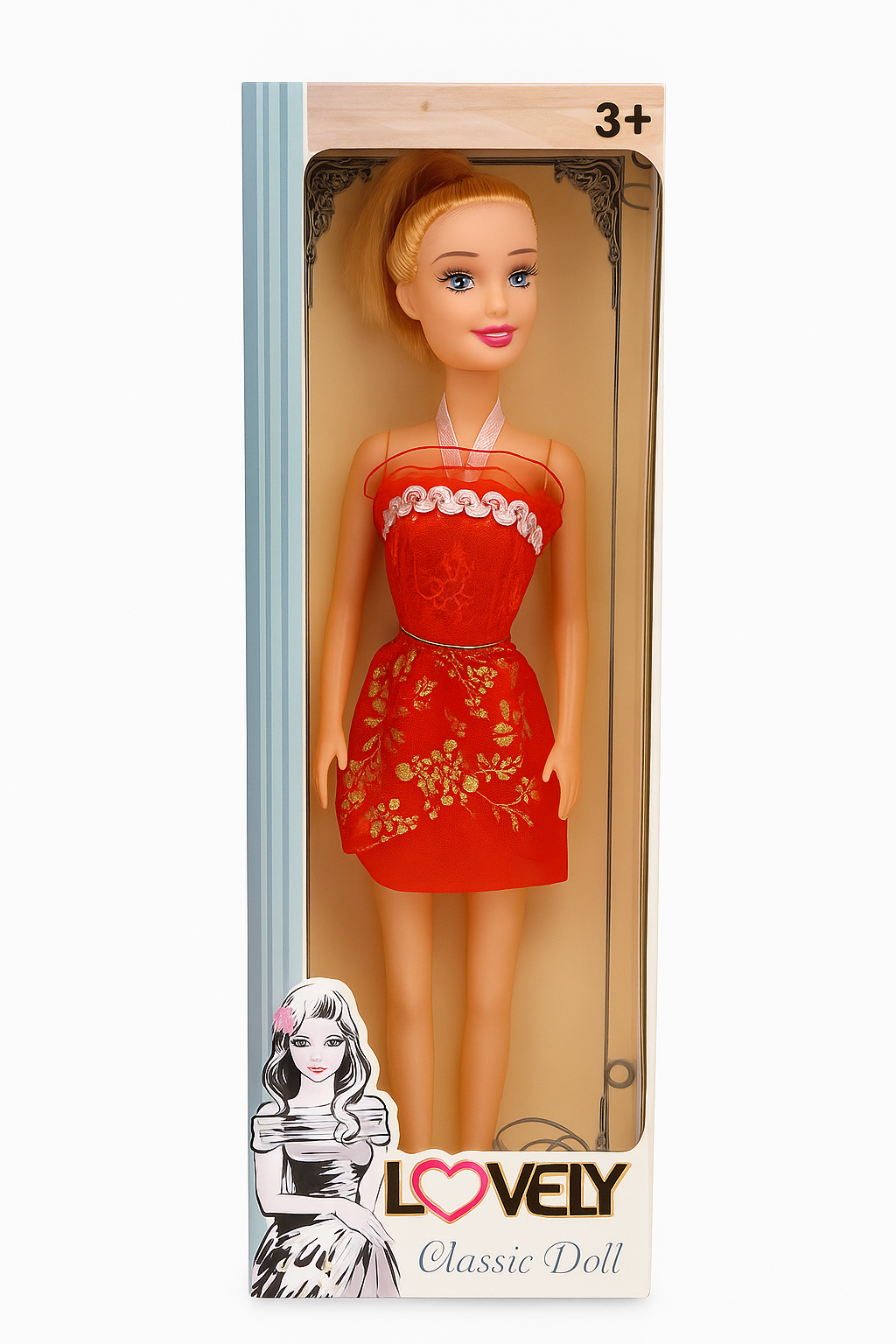Papusa Lovely Classic Doll 44 cm cu Rochie Rosie Eleganta - Model Fashion pentru Fetite 3+