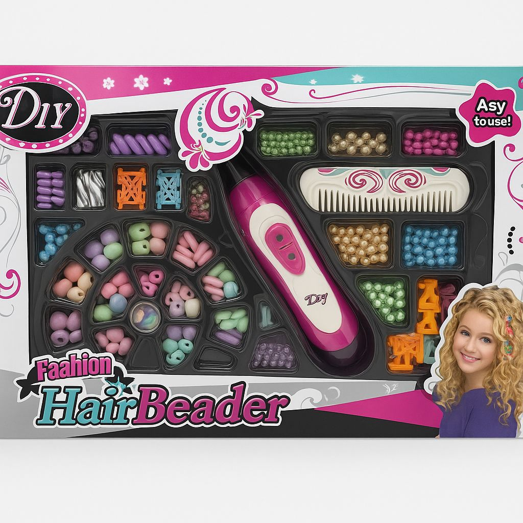 Set DIY Impletit Par pentru Fetite Fashion Hair Beader cu Margele si Accesorii, 40x29cm