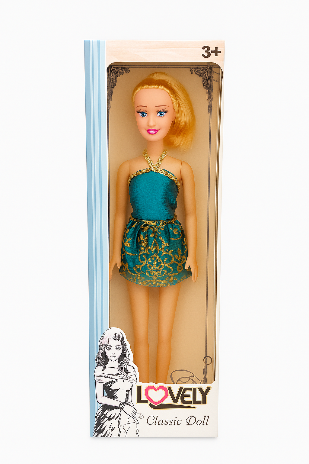 Papusa Lovely Classic Doll 44 cm cu Rochie Verde Elegant Decorata - Model Fashion pentru Fetite 3+