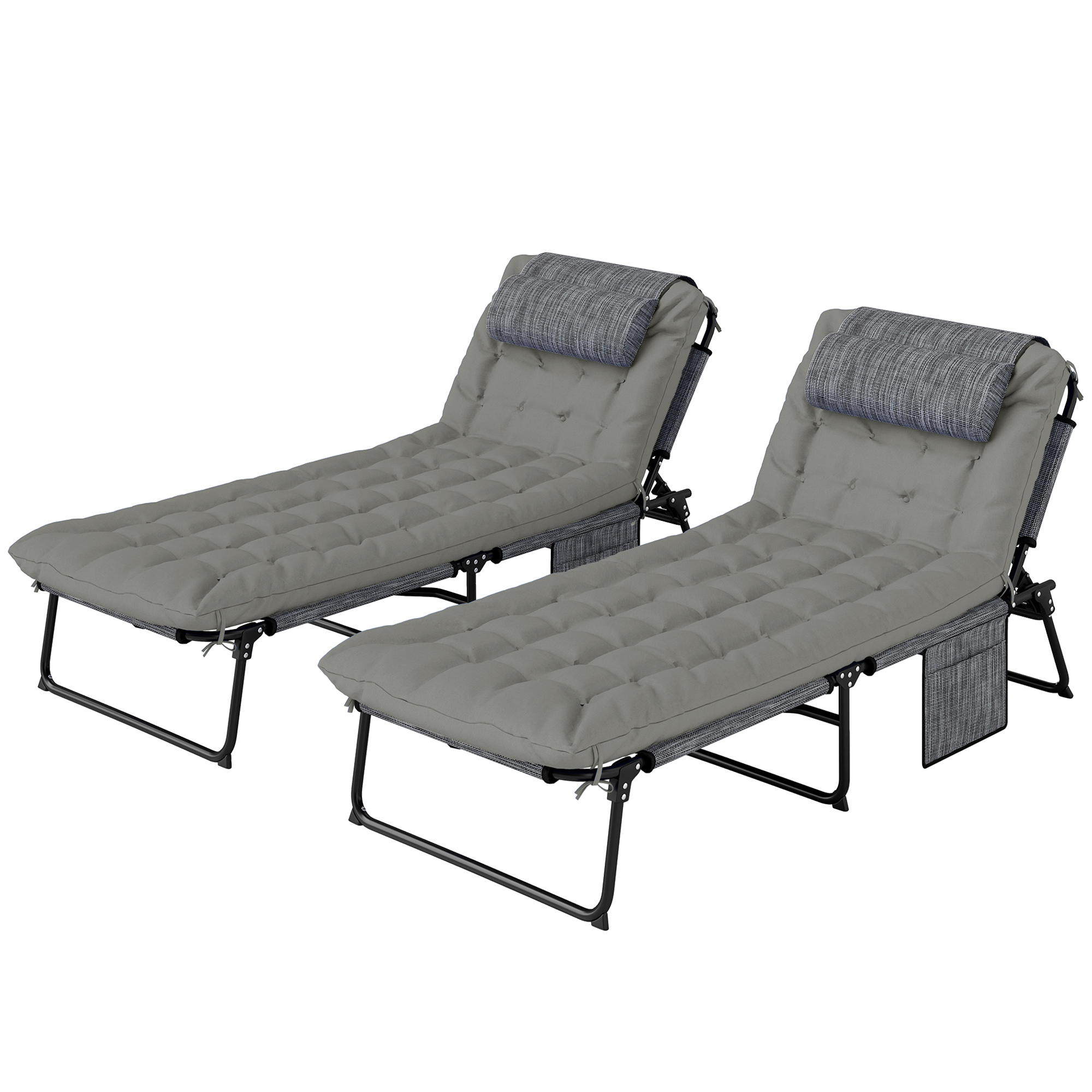 Outsunny Set de 2 șezlonguri pliabile cu spătar reglabil 4 poziții - pernă pentru cap și saltea groasă | Aosom Romania