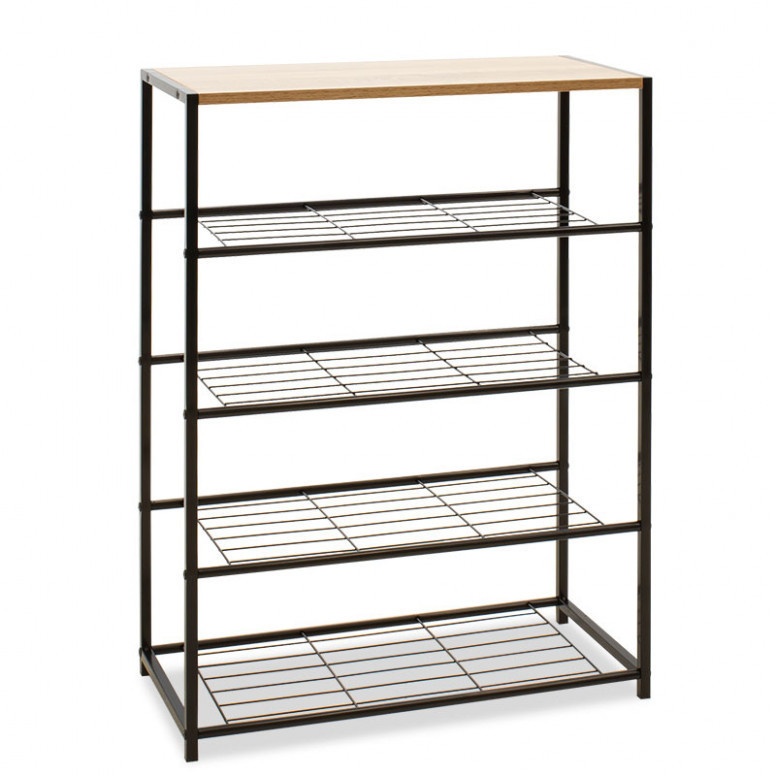 Suport pantofi Model Moses, Stejar / Negru, 83x30x43 cm