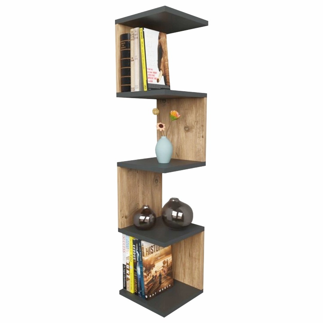 Raft Suspendat Model Eduardo, Antracit/Stejar, 25x25x109 cm