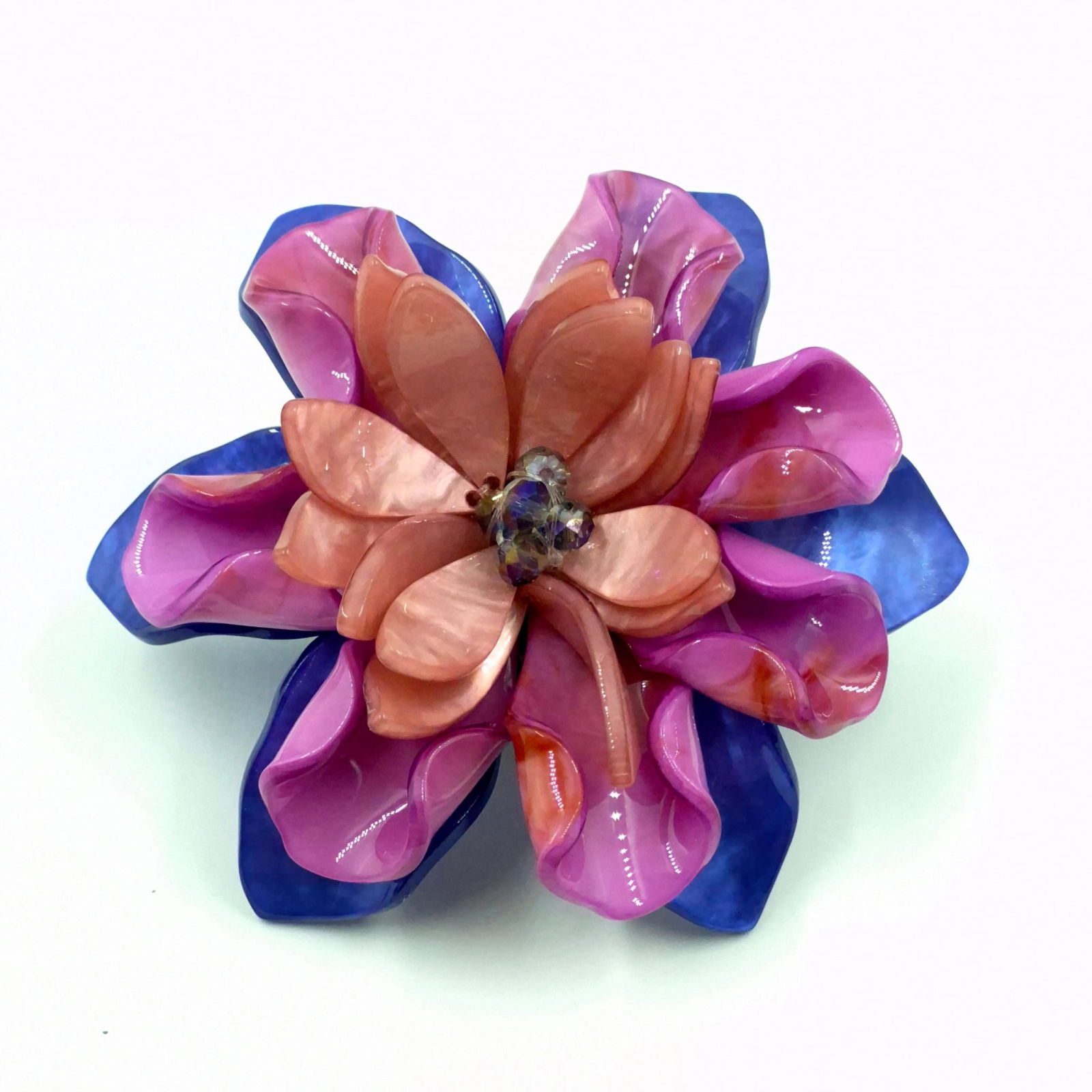 Brosa statement florala din rasina, cu petale multicolore