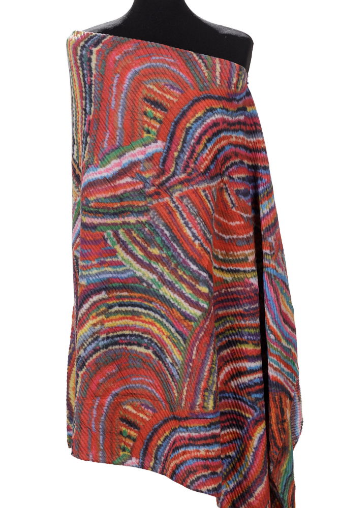 Esarfa mare plisata din casmir cu dubla fata in linii curbe multicolore