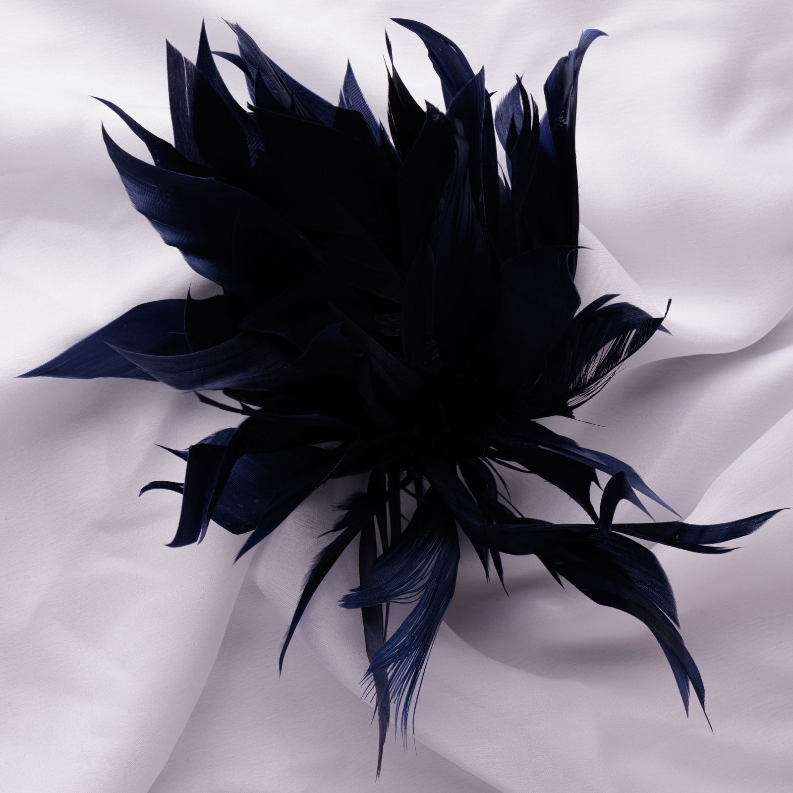 Brosa puf pene bleumarin cu diametru de 20 cm, cu clips pentru par