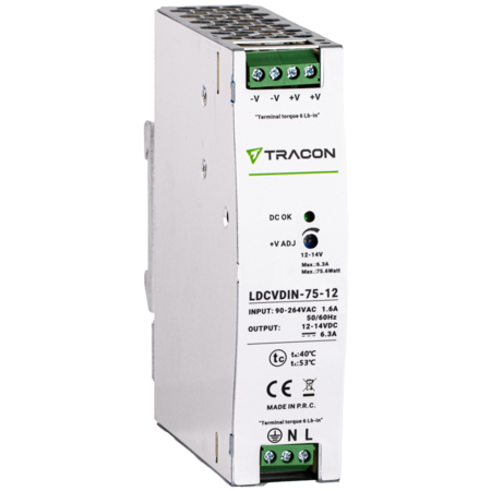 Alimentator cu montaj pe sina DIN, cu iesire de CC reglabila 90-264VAC,1,6A/DC12V,6,3A/75W
