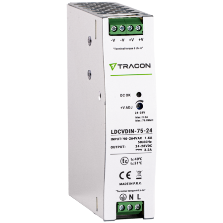 Alimentator cu montaj pe sina DIN, cu iesire de CC reglabila 90-264VAC,1,6A/DC24V,3,2A/75W