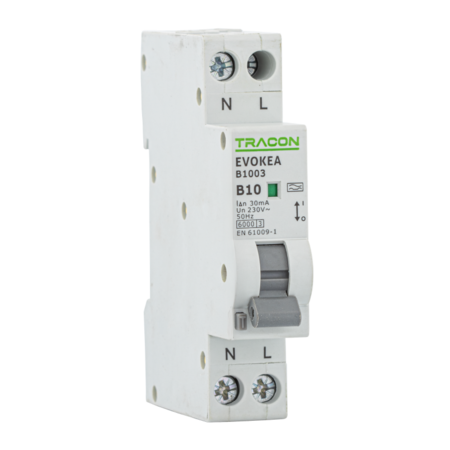 Disjunctor cu prot. dif., electronic, 2P, 1 mod., curba B B10, 30mA, 6kA, A