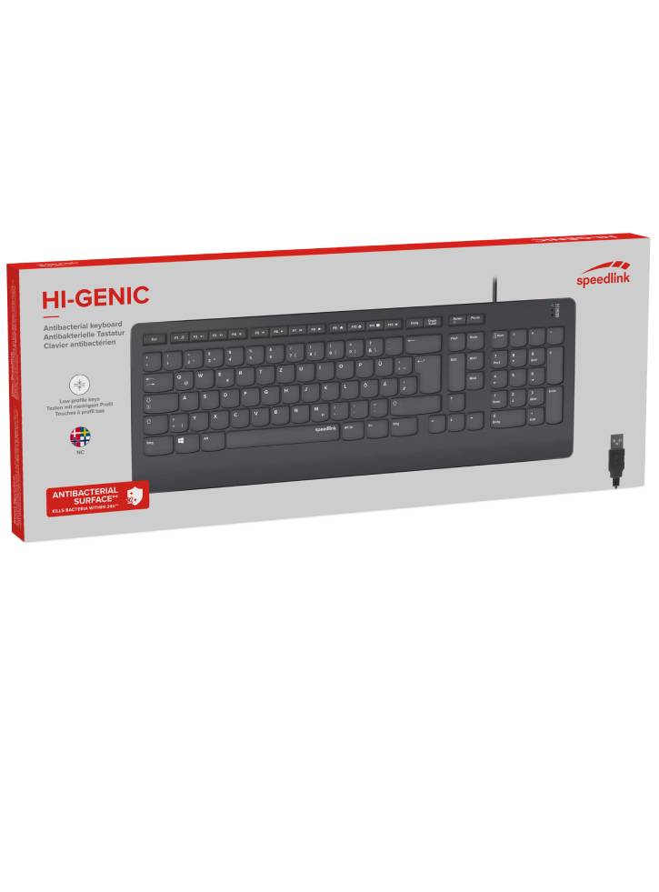 Speedlink Hi Genic Antibacterial Keyboard Black Nordic Layout PC