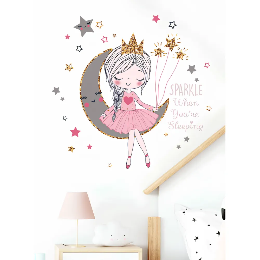 Sticker Perete Autocolant, Fetita pe Luna, cu Stele 83x61cm - 322136