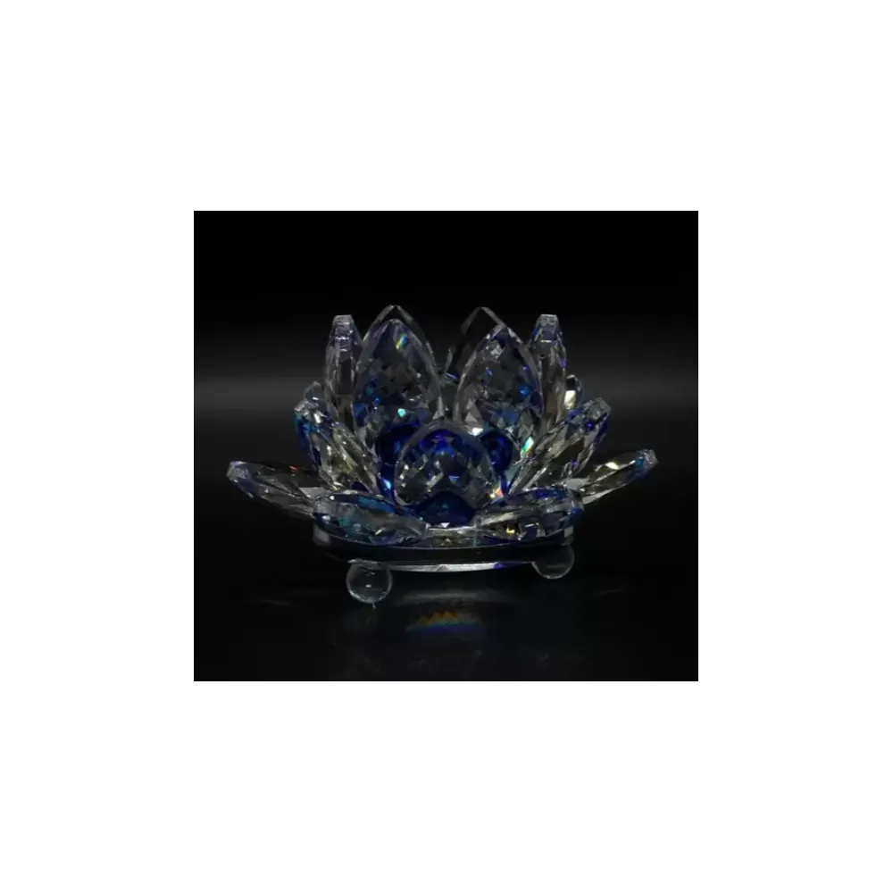 Floare de lotus albastra din cristal de sticla -8cm