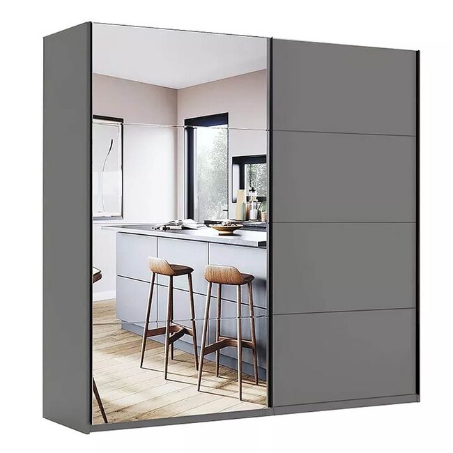 Dulap Rio, uși glisante cu oglindă, PAL melaminat, 160x58x224 cm, grafit