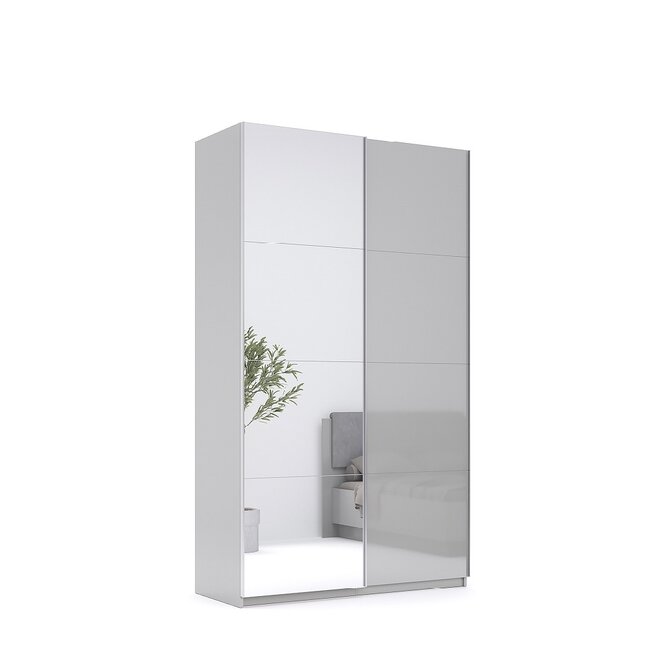 Dulap Rio, uși glisante cu oglindă, PAL melaminat, 140x58x224 cm, grafit