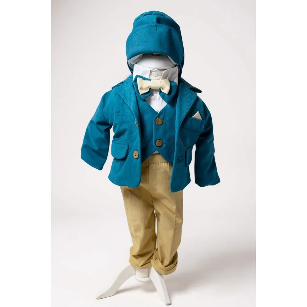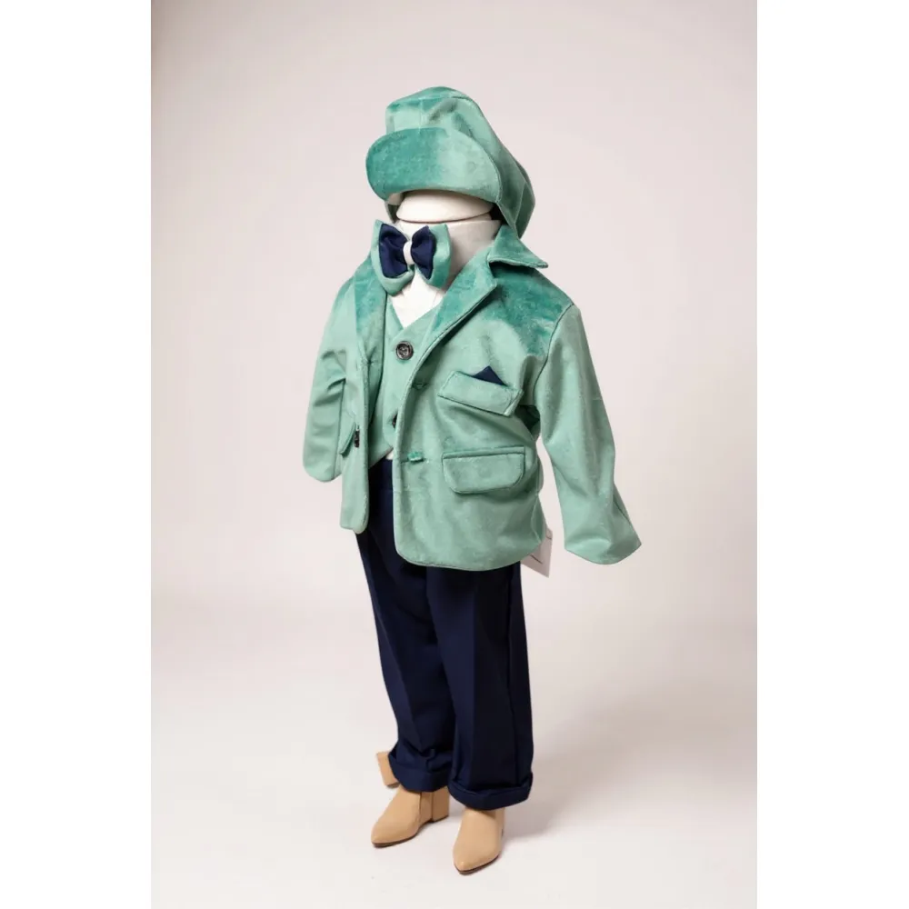 Costum botez catifea verde azuriu- DPH311