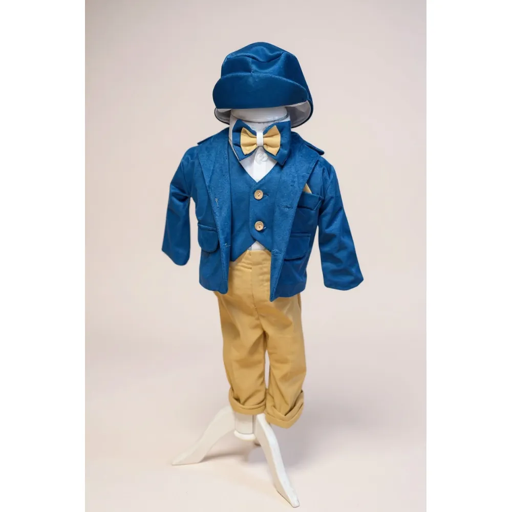 Costum botez catifea bleu, model cu frac- DPH318