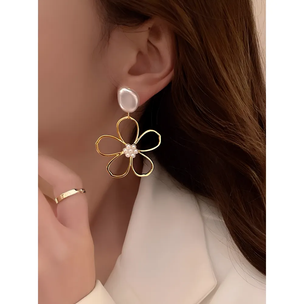 Cercei Lungi Floare, Aurii - 089938