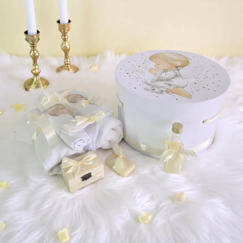 Trusou Botez cu 8 Piese Imprimat, Ingeras, Culoare Unt - BAB167