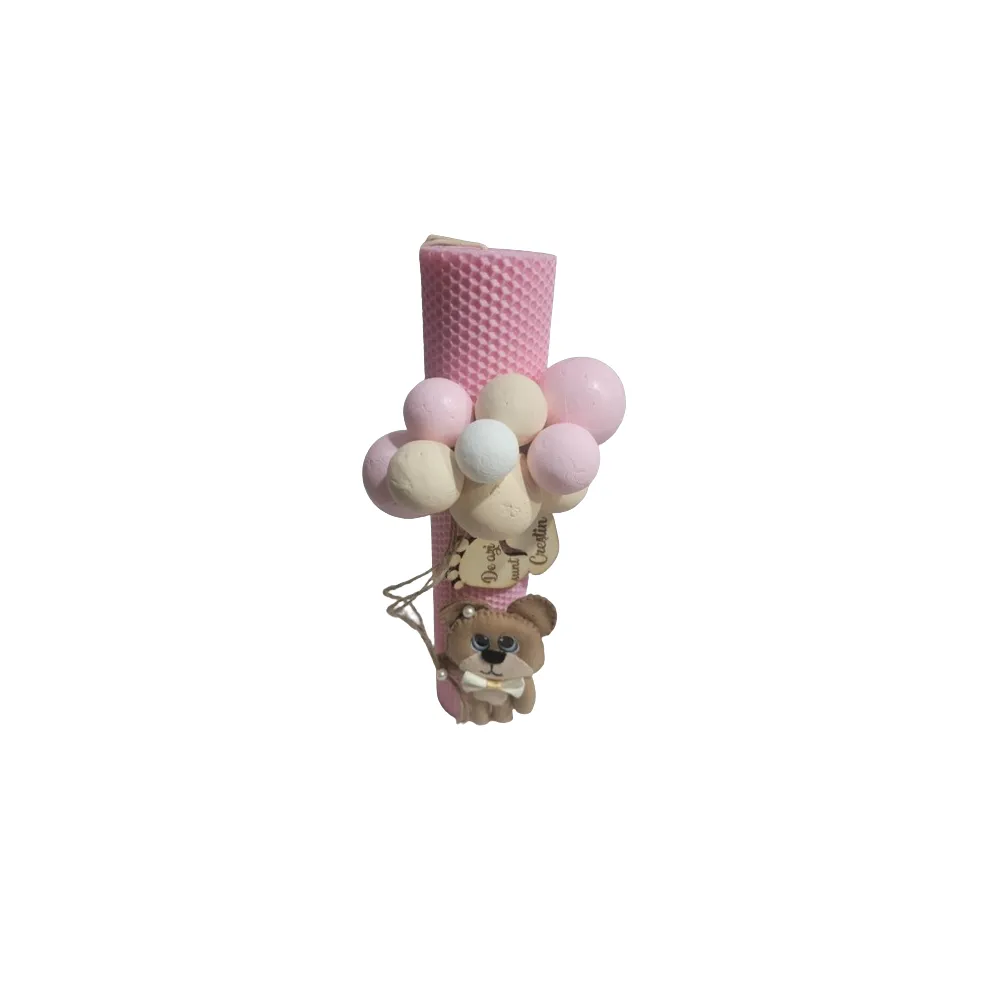 Lumanare Botez Tip Fagure, Baloane si Jucarie Din Fetru, Ceara Naturala - BAB114