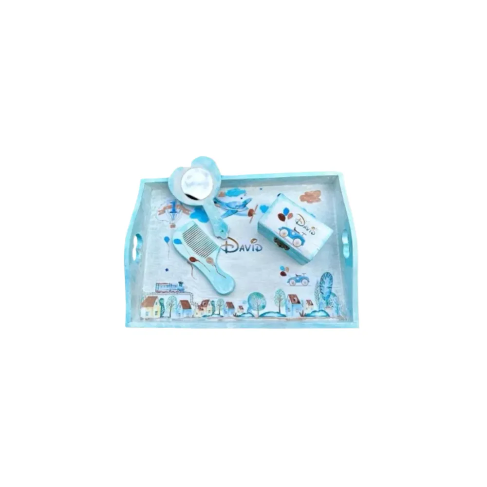 Trusou Botez cu 8 Piese Imprimat, Mikey Mouse, Culoare Albastru - BAB97