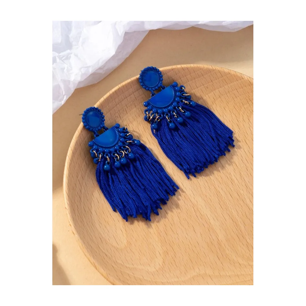 Cercei Lungi, cu Ciucuri Albastri, Veloura - 841159