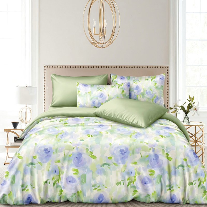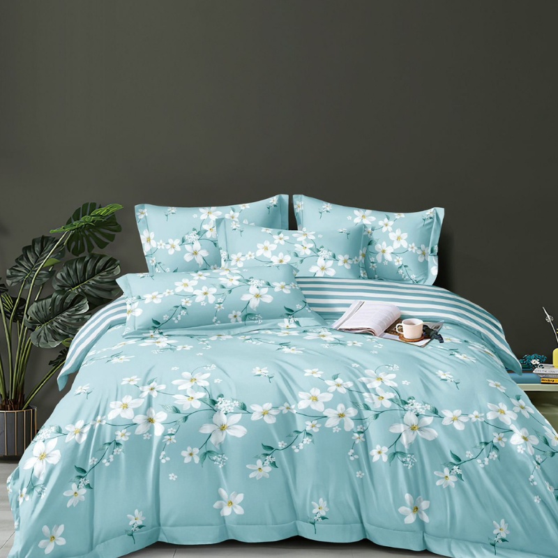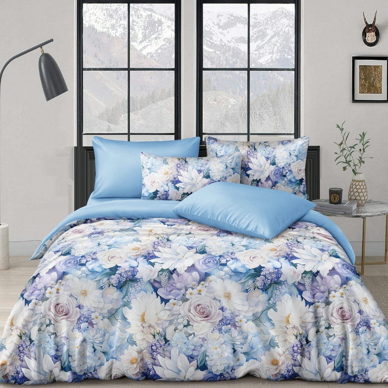 Lenjerie de pat Finet Superfin cu elastic – 4 piese, Bloom - Blue Serenity