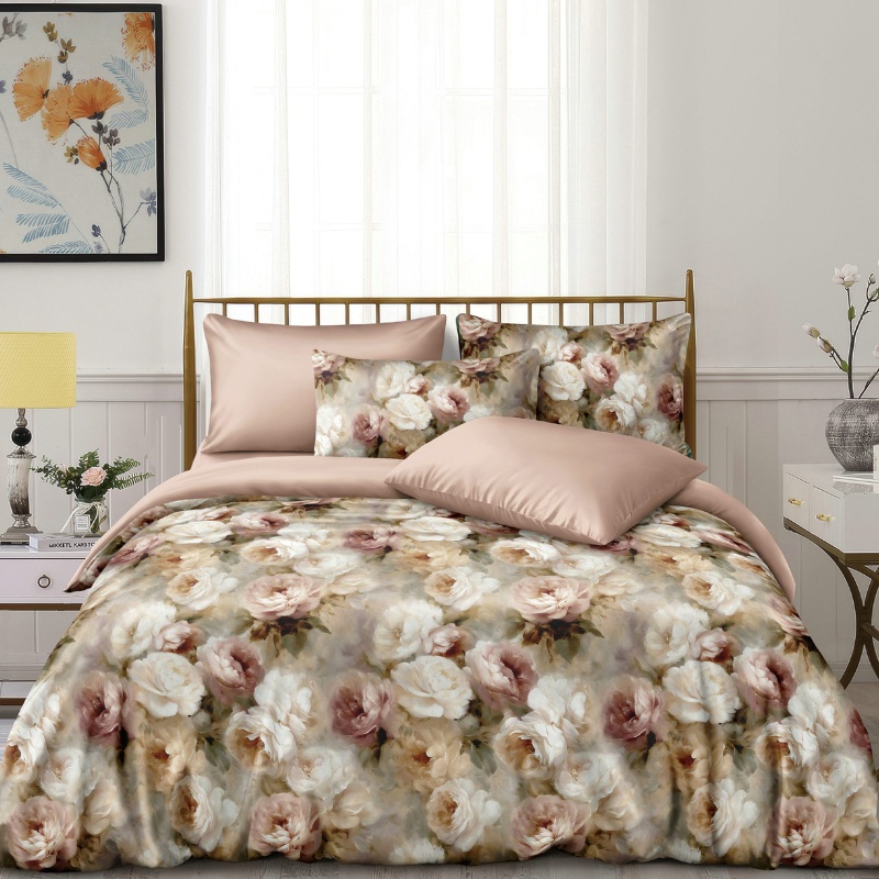 Lenjerie de pat Finet Superfin cu elastic – 4 piese, Bloom - Soft Nostalgia