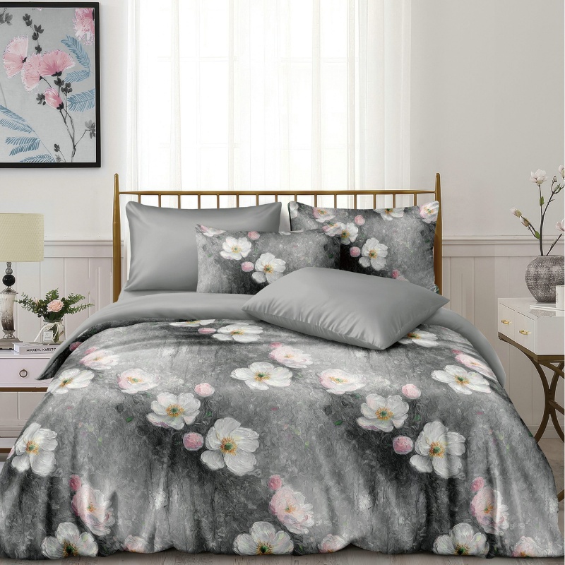 Lenjerie de pat Finet Superfin cu elastic – 4 piese, Bloom - Silver Petals