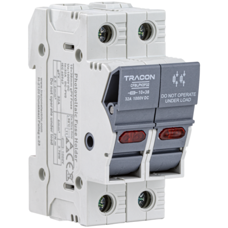 Separatoare modulare pentru fuzibile cilindrice, PV 32A, 10×38, Un=1000VDC, Ui=6kV, 20kA, DC-PV0, IP20, 2P, LED