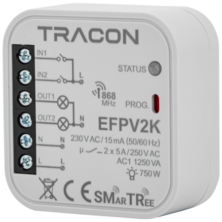 Unitate receptie radio, in doza de aparat,2 canale, pt.intr. 230 V, 50 Hz, 2x5 A, 2 NO, 868.32 MHz