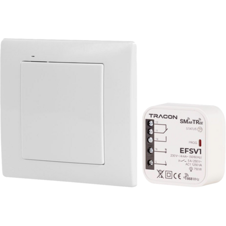 Set controler fara fir, 1 canal, buton de perete 230 V, 50 Hz, 5 A, 1 NO/1 NC, 868.32 MHz