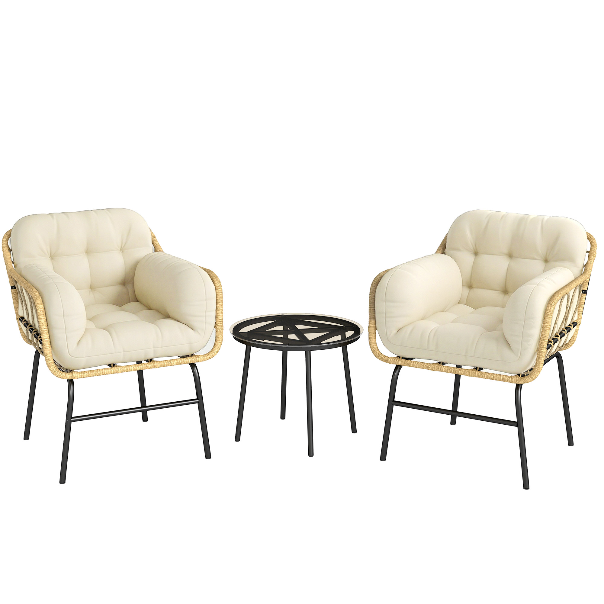 Outsunny Set de mobilier de grădină din ratan sintetic cu 2 scaune cu perne și masă cu blat din sticlă, gri | Aosom Romania