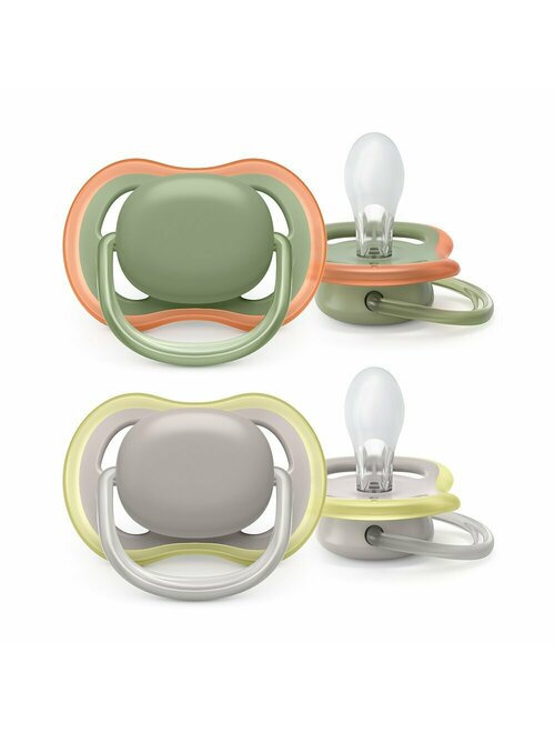 Set 2 suzete bebelusi, Philips Avent, Ultra Air, Ortodontice, Silicon moale igienic, Disc de protectie moale si flexibil, Fara BPA, 0- 6 luni+, Fosforescente, Deco Verde