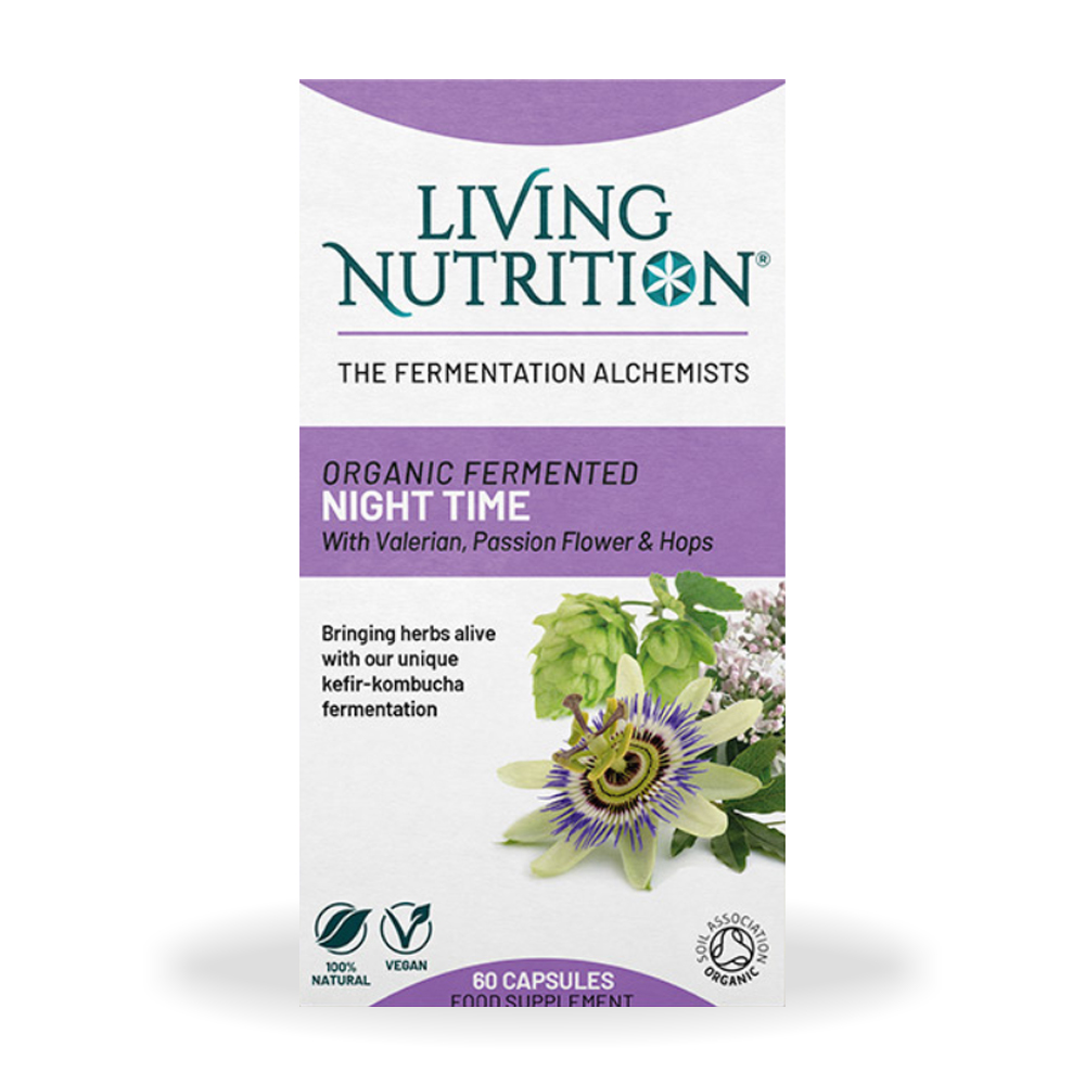 Organic Fermented Night Time cu valeriana, passion flower si hamei 500 mg (60 capsule), Living Nutrition