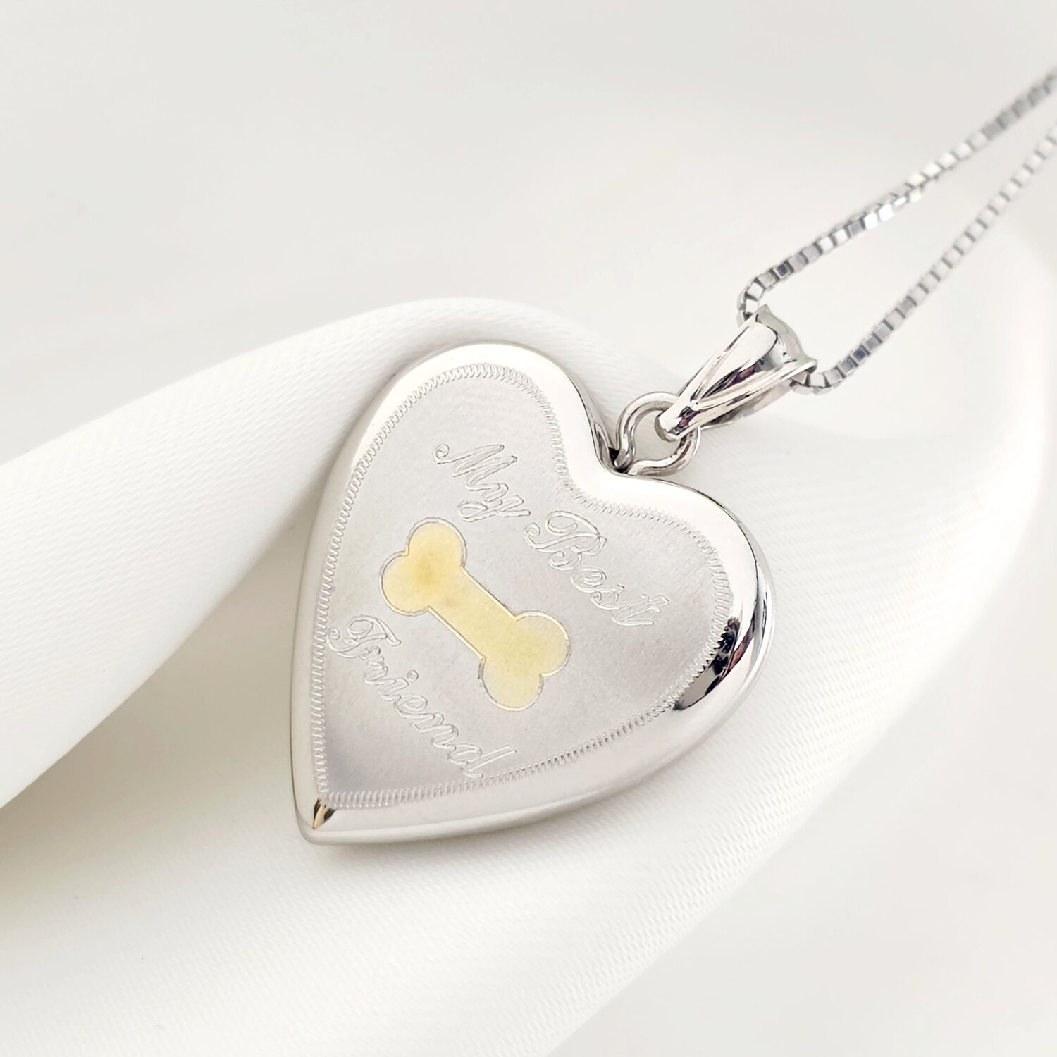 Medalion inima cu poze in interior - My best friend - Argint 925 rodiat & os placat cu Aur Galben 18K