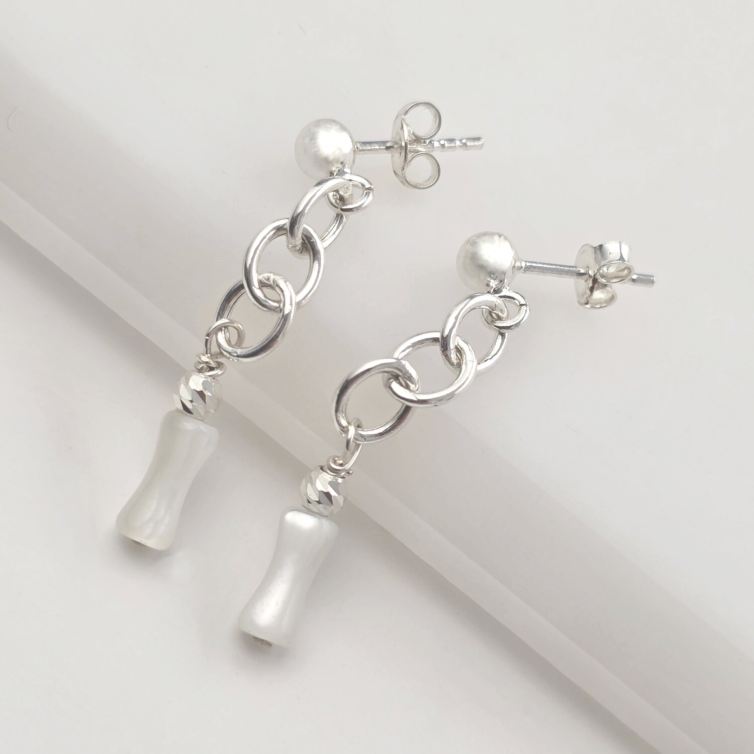 Cercei Curgatori cu Pietre Abalone Tubulare – Argint 925 placat cu Aur 18K