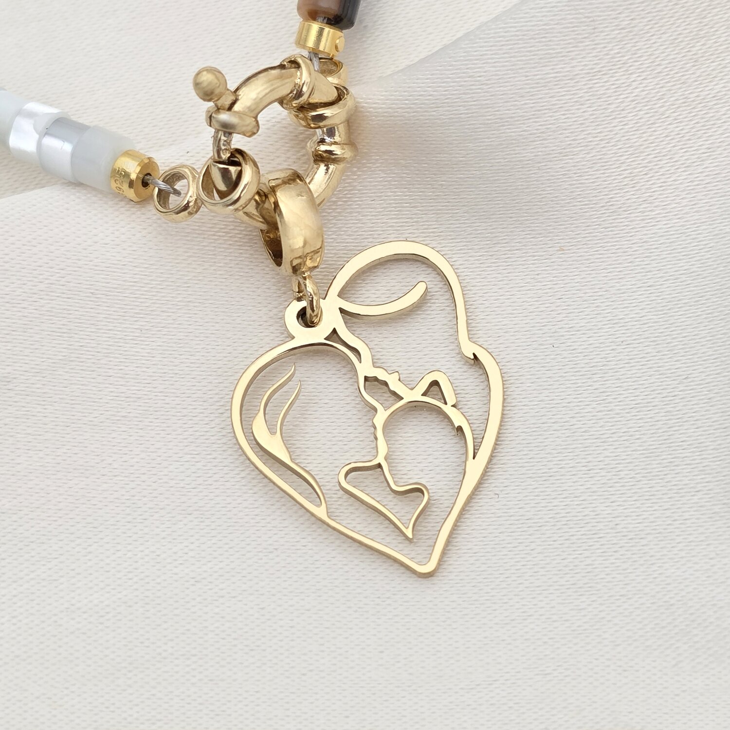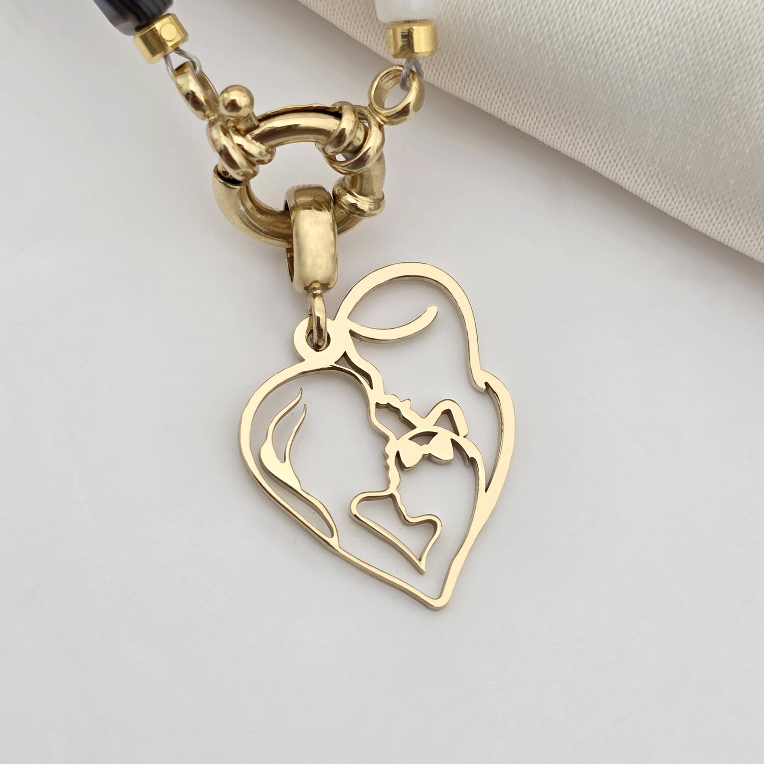 Colier Legatura Eterna - Inima cu Silueta Parintilor si Bebelus Baietel & Colier Perle - Argint 925 placat cu Aur Galben 18K