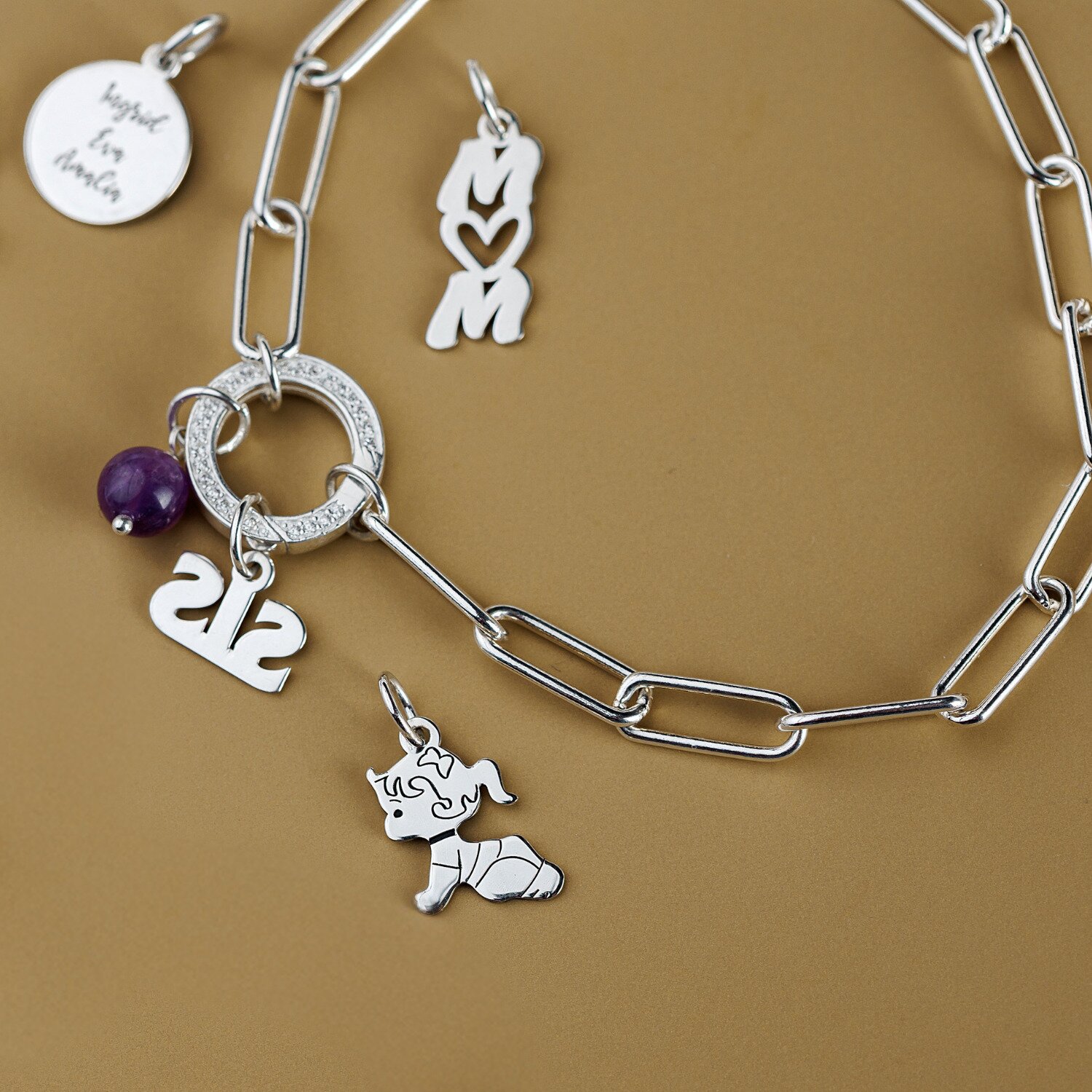 Lantisor Legaturi de Suflet - Pandantiv Inima si Elemente cu nume - Argint 925