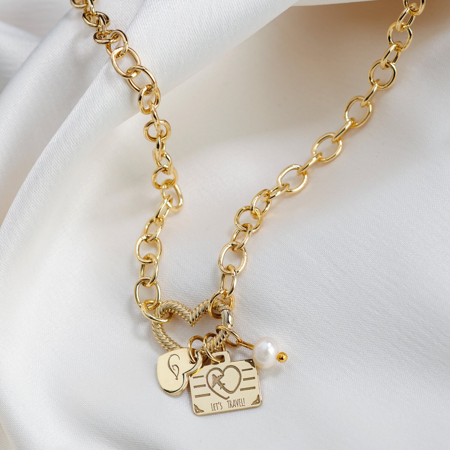 Lantisor Legaturi de Suflet - Pandantiv Inima si Elemente cu nume - Argint 925 placat cu Aur Galben 18K