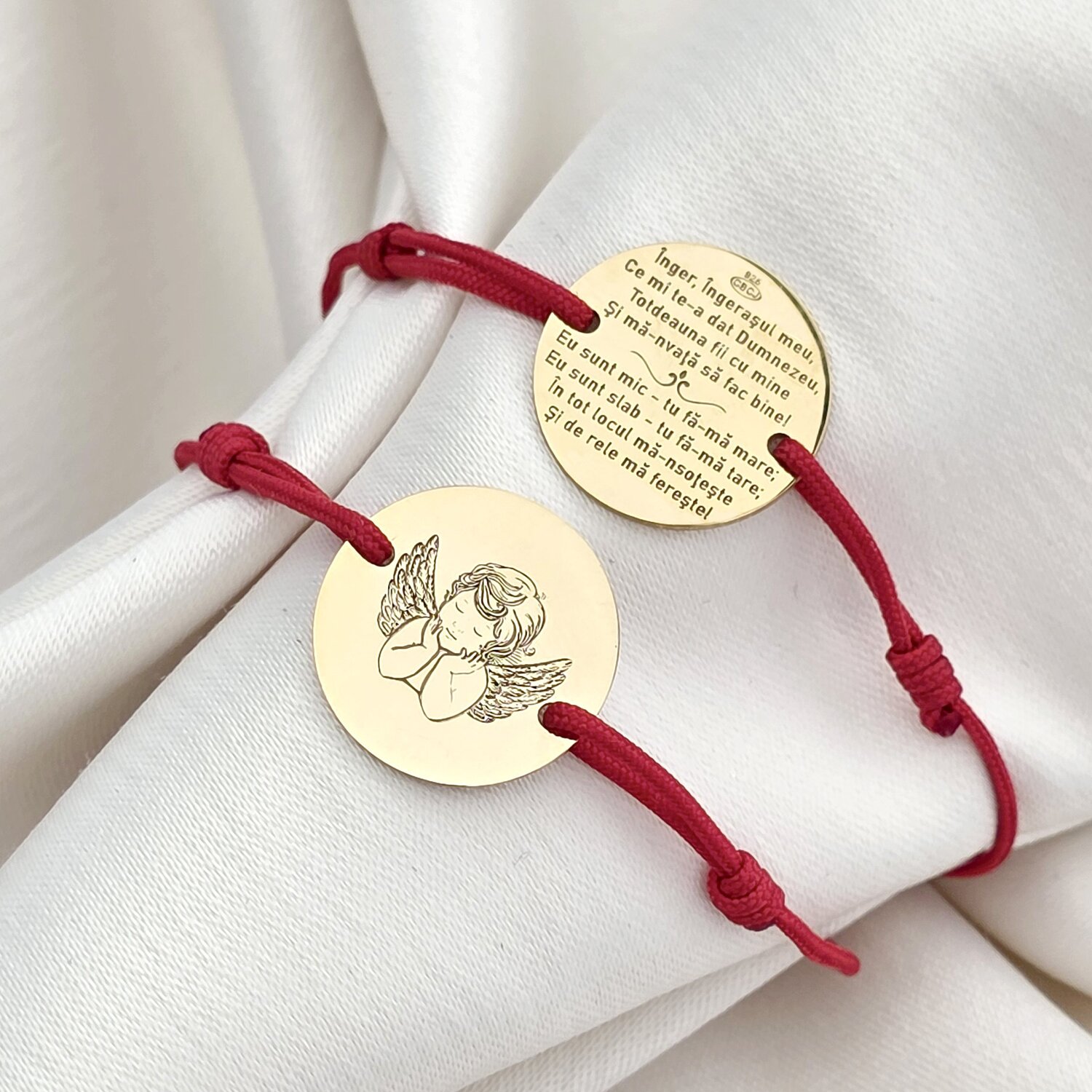 Bratara Rugaciune Ingerasul meu - Bijuterie cu Har - Argint 925 placat cu Aur Galben 18K - Snur reglabil