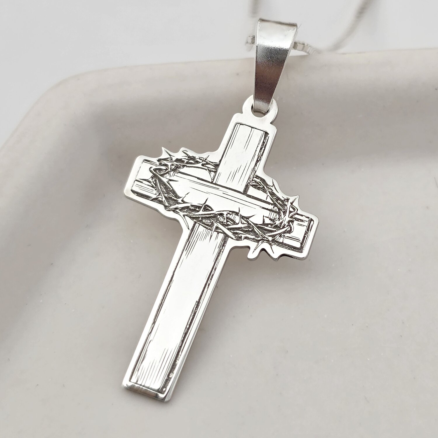 Lantisor Crucea de lemn cu Coroana de spini - Bijuterie cu Har - Argint 925