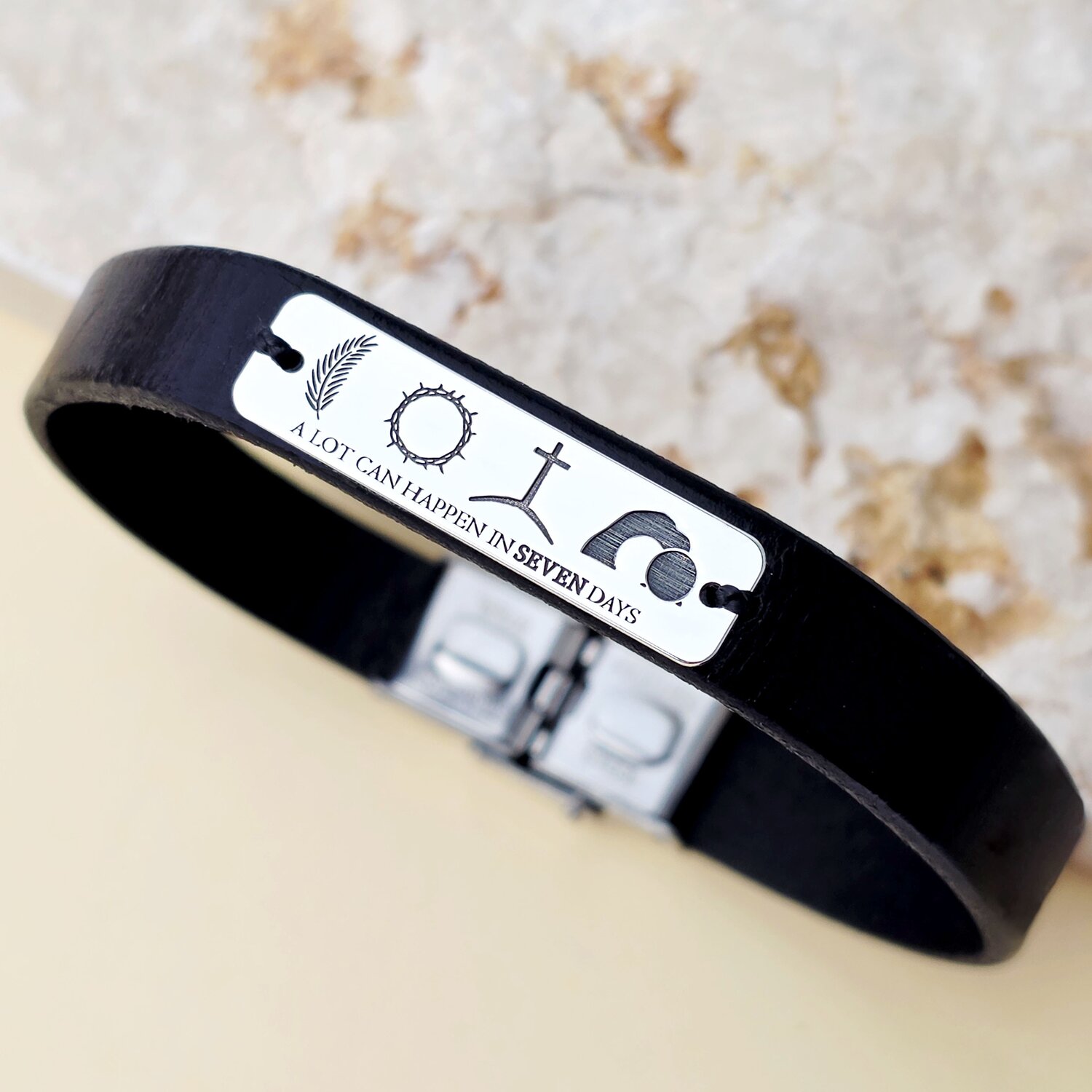Bratara Crearea lumii in 7 zile - Bijuterie cu Har - Placuta Argint 925 - Piele si nchizatoare clips inox