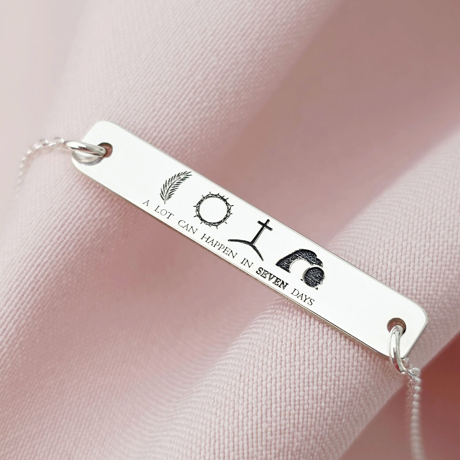 Bratara Crearea lumii in 7 zile - Bijuterie cu Har - Placuta si lantisor din Argint 925