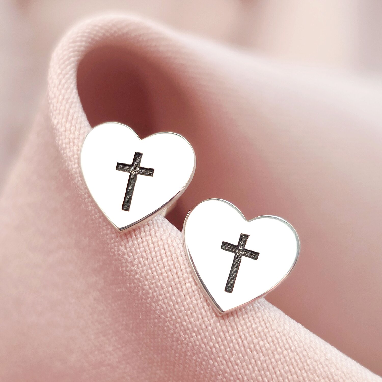 Cercei Iubire si Har - Model inima si cruce - Argint 925 - Inchizatoare surub