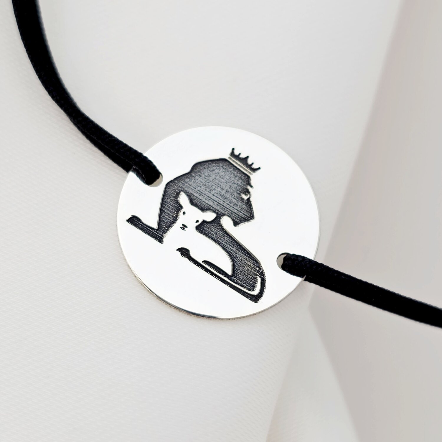 Bratara caine iubit - Personalizare cu poza - Argint 925 - Snur reglabil, diverse culori