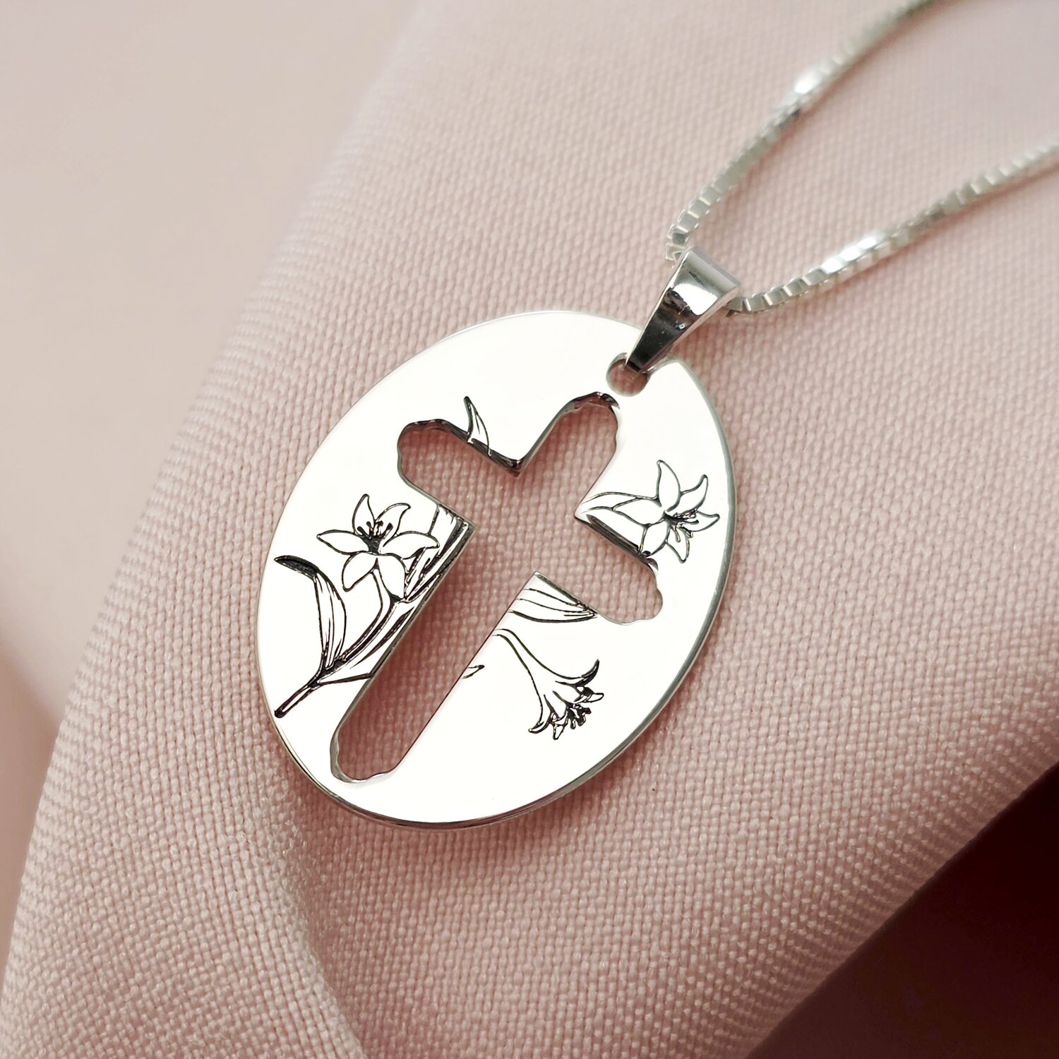 Lantisor Parfum Divin - Bijuterie cu Har - Pandantiv cruce si crin regal - Argint 925