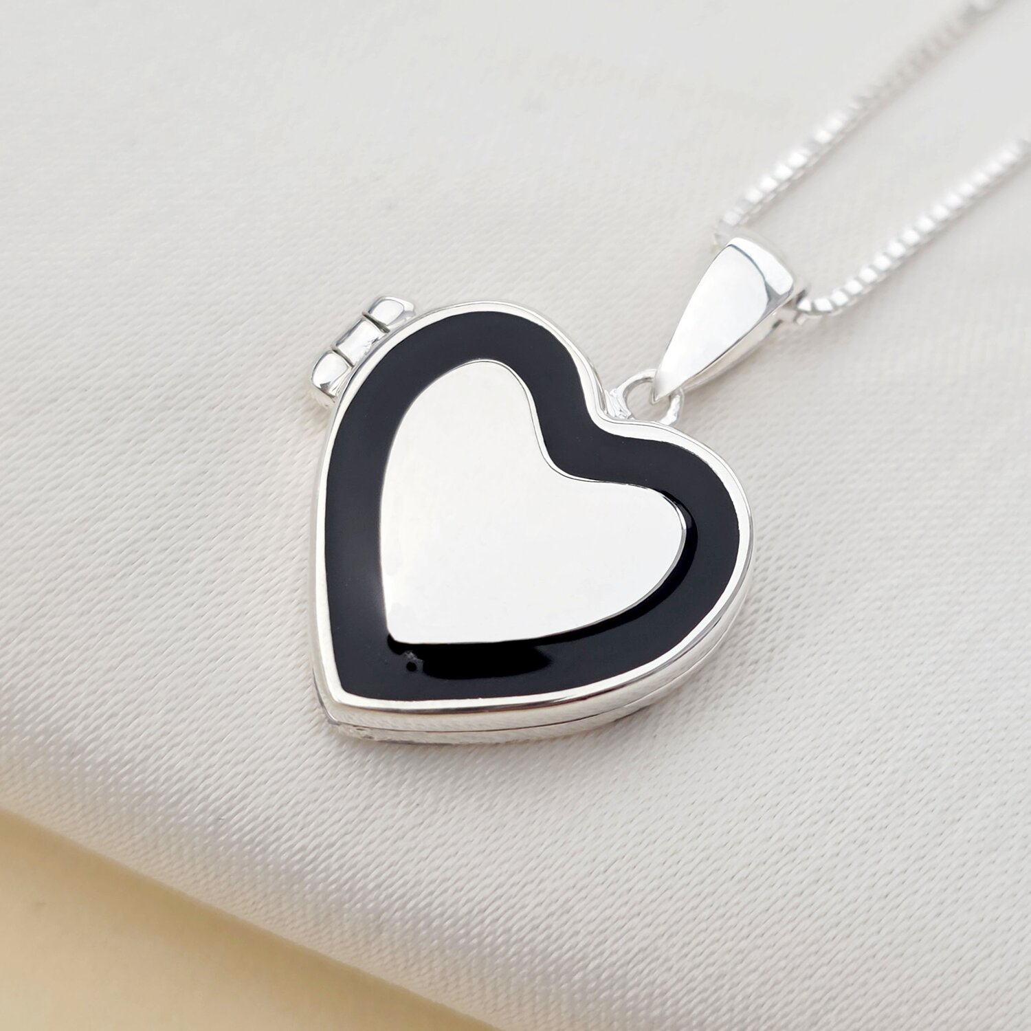 Medalion Eternitate in inima - Locket cu poze in interior - Argint 925 si email negru