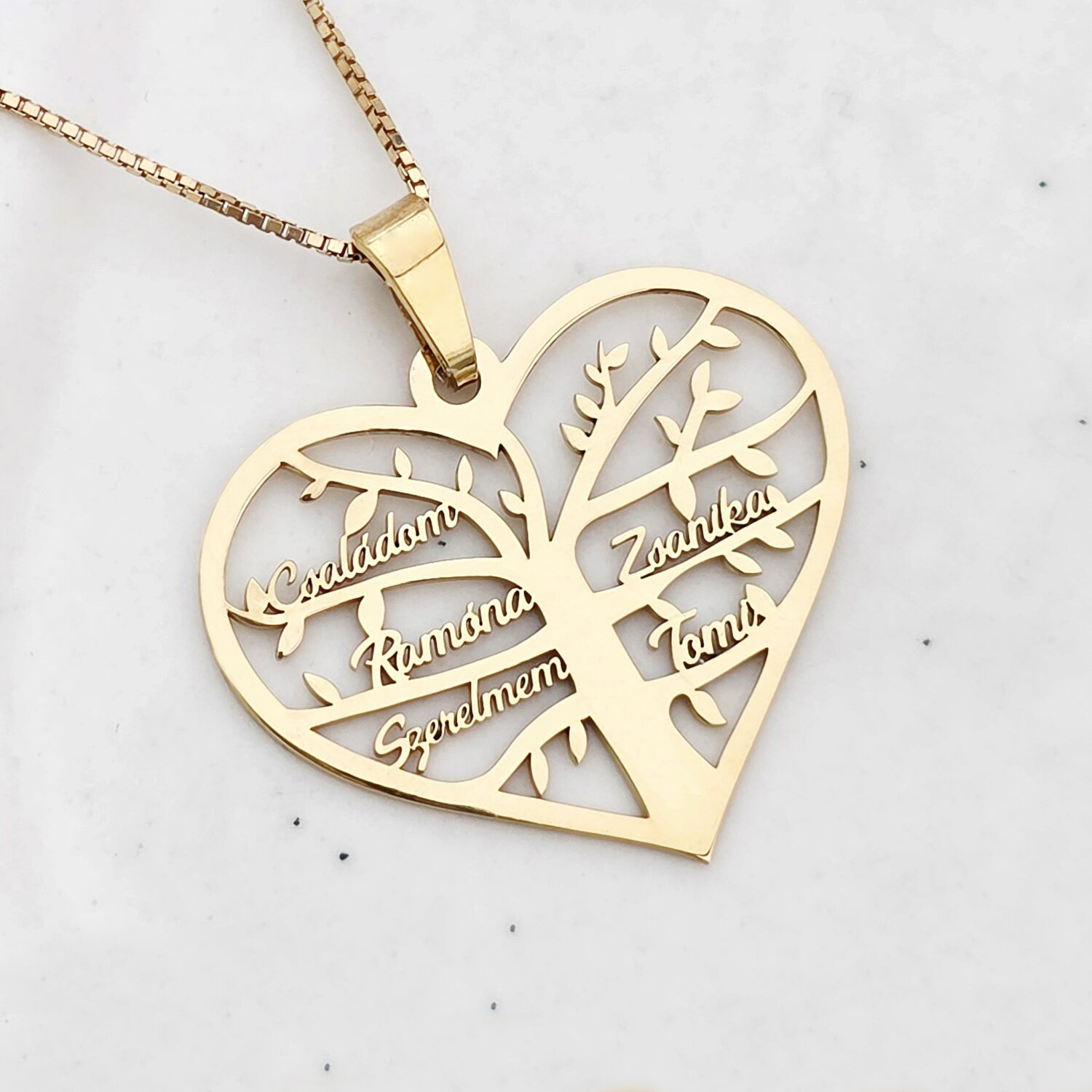 Lantisor premium - Inima Copacului - Pandantiv personalizat cu nume - Argint 925 placat cu Aur Galben 18K