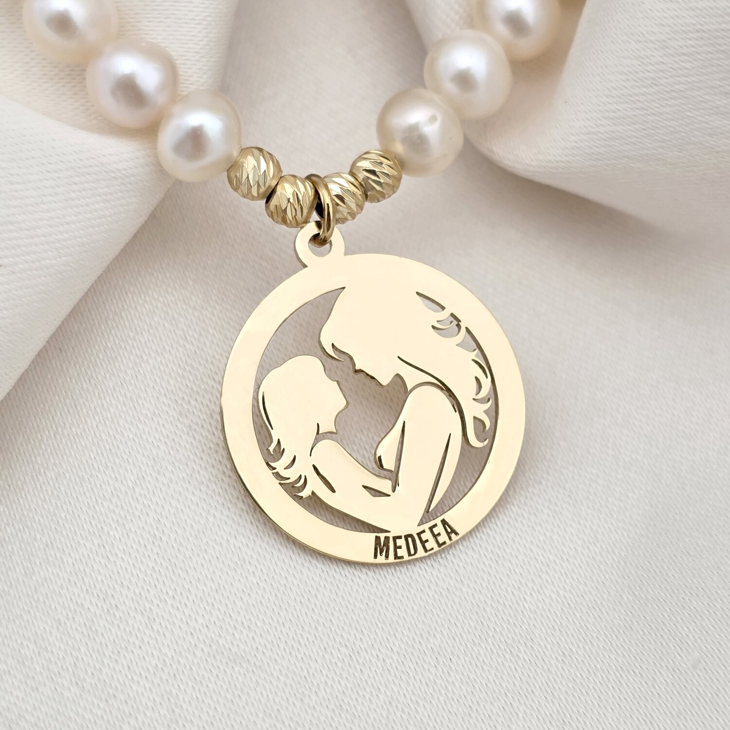 Lantisor cu pandantiv rotund - decupat la interior si charm picatura de Perla - Argint 925 placat cu Aur Galben 18K