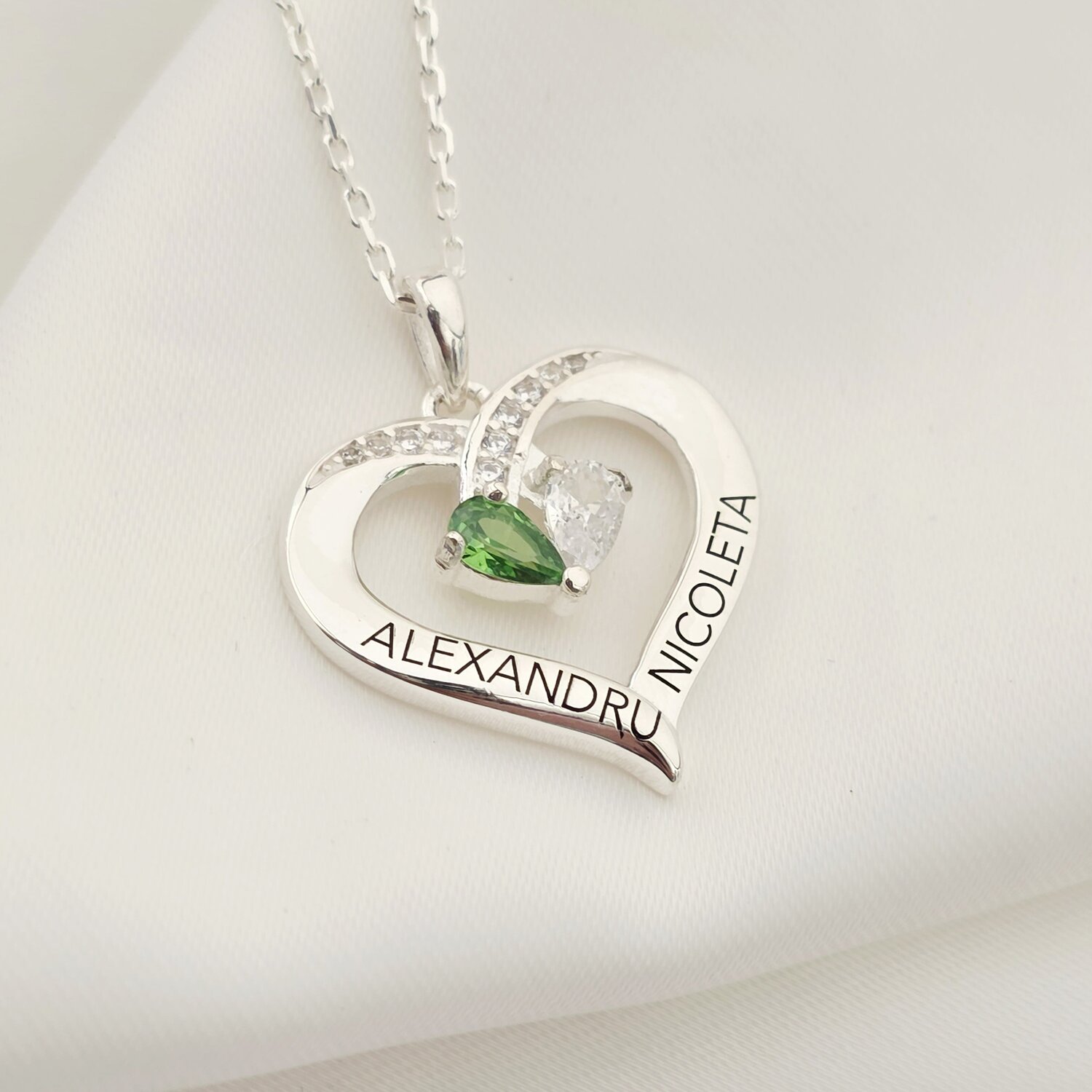 Lantisor Inima cu Poveste - 4 nume si Cristale Zirconia - Argint 925
